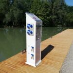 Borne eau/électricité en polyester renforcé fibre de verre composée de 4 prises et 4 robinets
