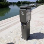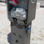 Borne eau/électricité en polyester renforcé fibre de verre composée de 4 prises et 4 robinets